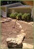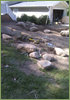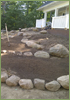 Established property in Dundas: expand existing beds, install raised natural stone patio, and expand existing rock garden with natural stone wall; install natural stone steps and walkway.